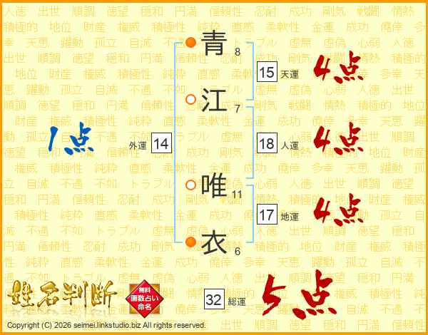 青江唯衣さんの総運は32画の5点!