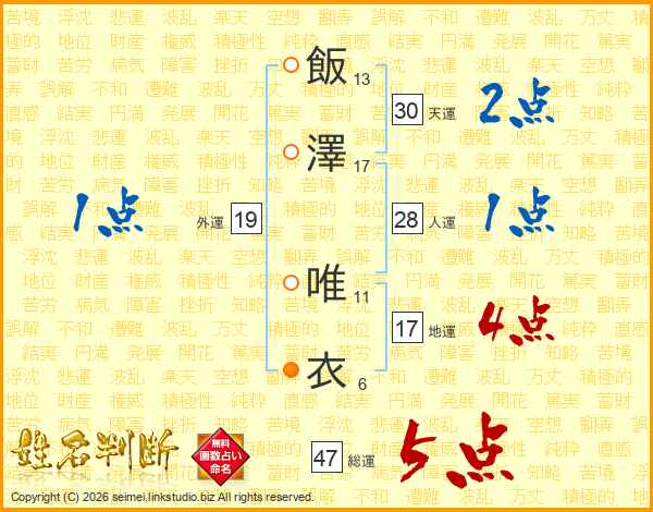飯澤唯衣さんの総運は47画の5点!