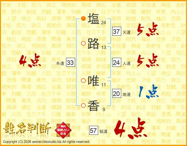 塩路唯香さんの総運は57画の4点!