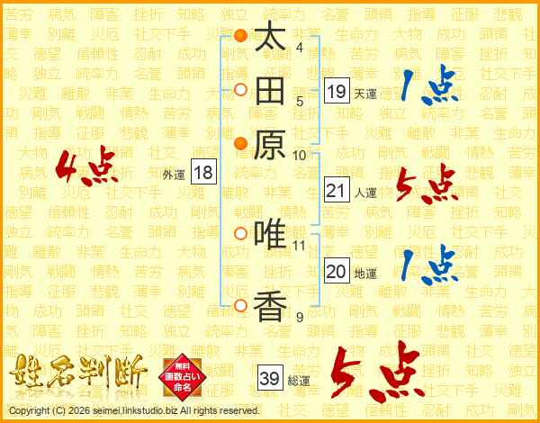 太田原唯香さんの総運は39画の5点!