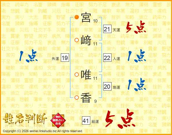 宮(10画)﨑(11画) 唯(11画)香(9画)