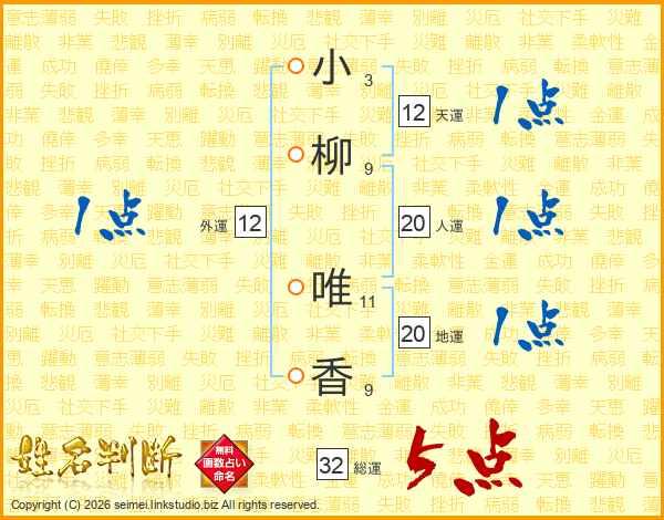 小柳唯香さんの総運は32画の5点!