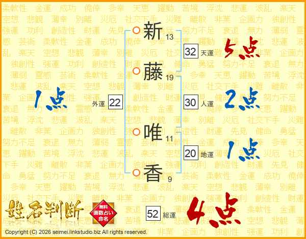 新藤唯香さんの総運は52画の4点!
