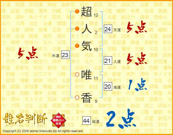 超人気唯香さんの天運は24画の5点!