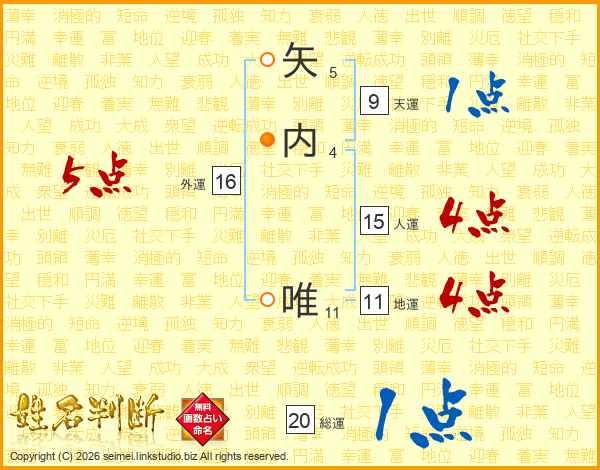 矢内唯さんの総運は20画の1点!