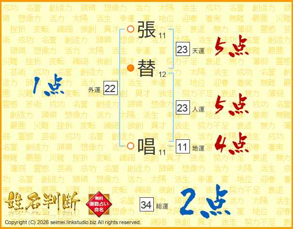 張替唱さんの人運は23画の5点!