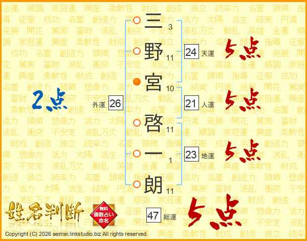 三野宮啓一朗さんの総運は47画の5点!