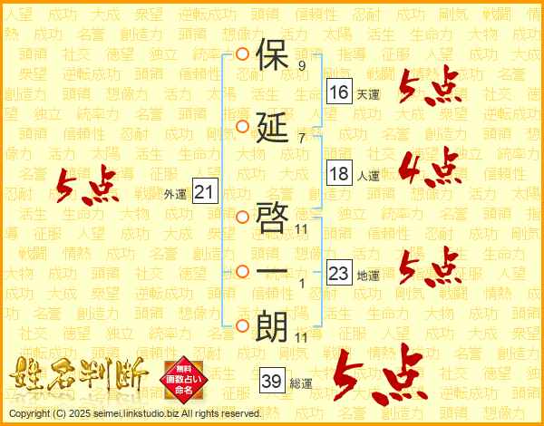保延啓一朗さんの総運は39画の5点!