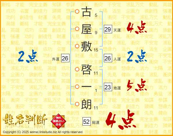 古屋敷啓一朗さんの総運は52画の4点!