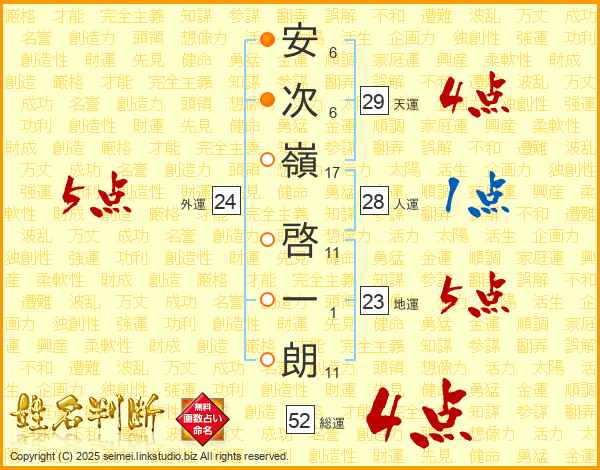 安次嶺啓一朗さんの総運は52画の4点!