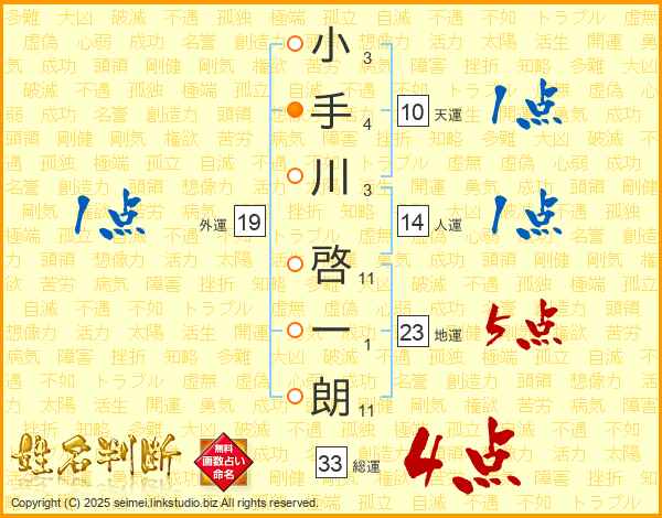 小手川啓一朗さんの総運は33画の4点!