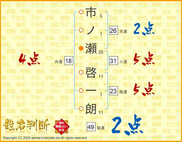 市ノ瀬啓一朗さんの人運は31画の5点!