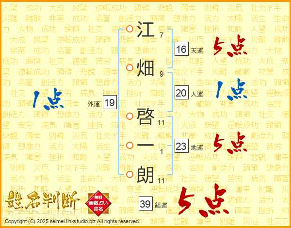 江畑啓一朗さんの総運は39画の5点!