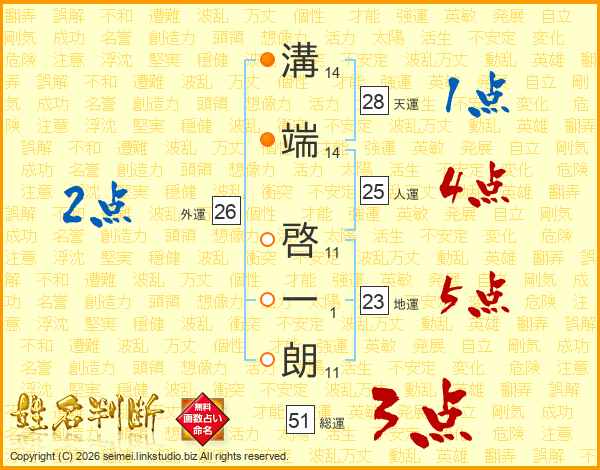 溝端啓一朗さんの総運は51画の3点!