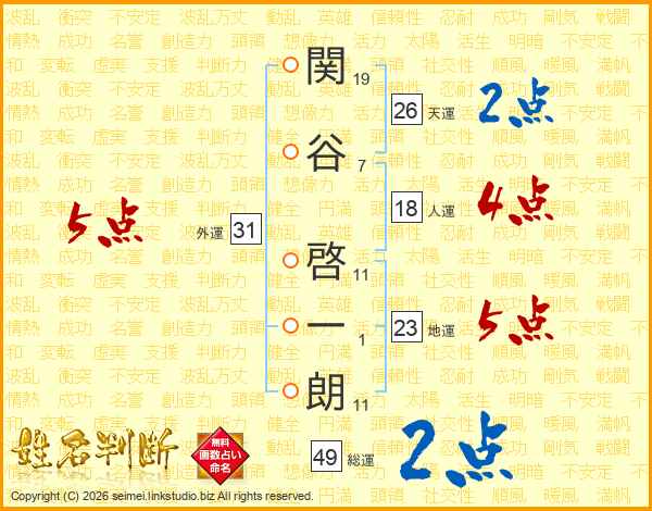 関谷啓一朗さんの総運は49画の2点!