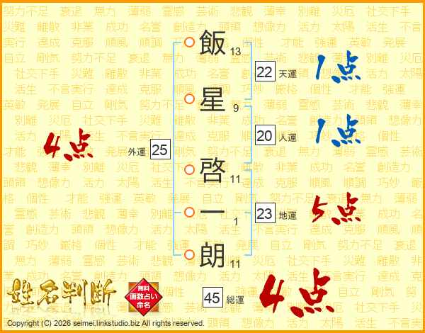 飯星啓一朗さんの総運は45画の4点!