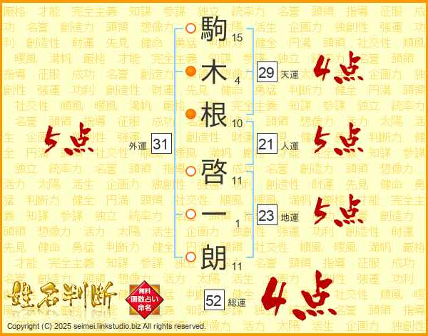 駒木根啓一朗さんの総運は52画の4点!