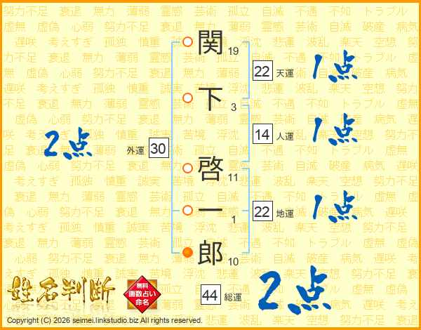 関下啓一郎さんの総運は44画の2点!