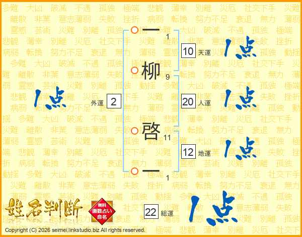 一柳啓一さんの総運は22画の1点!