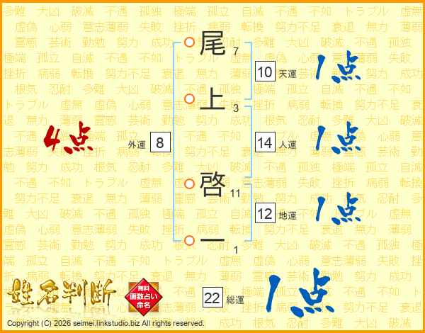 尾上啓一さんの総運は22画の1点!
