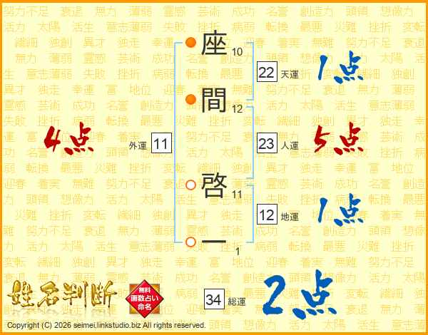 座間啓一さんの総運は34画の2点!