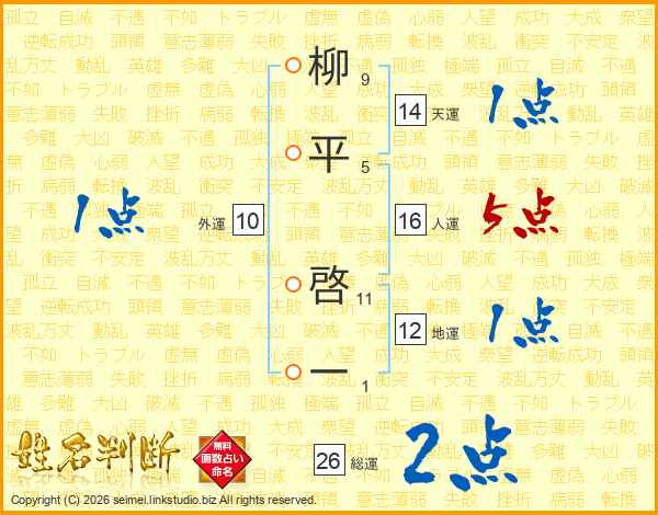 柳平啓一さんの総運は26画の2点!