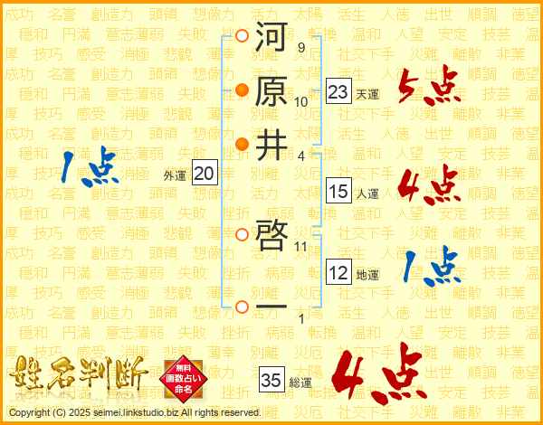 河原井啓一さんの総運は35画の4点!
