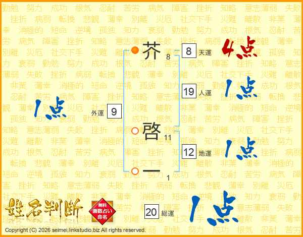 芥啓一さんの総運は20画の1点!