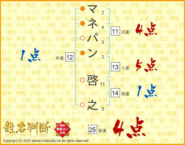 マネパン啓之さんの総運は25画の4点!