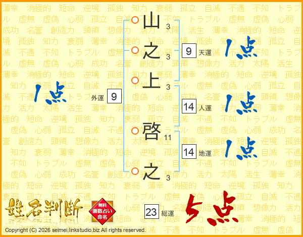 山(3画)之(3画)上(3画) 啓(11画)之(3画)