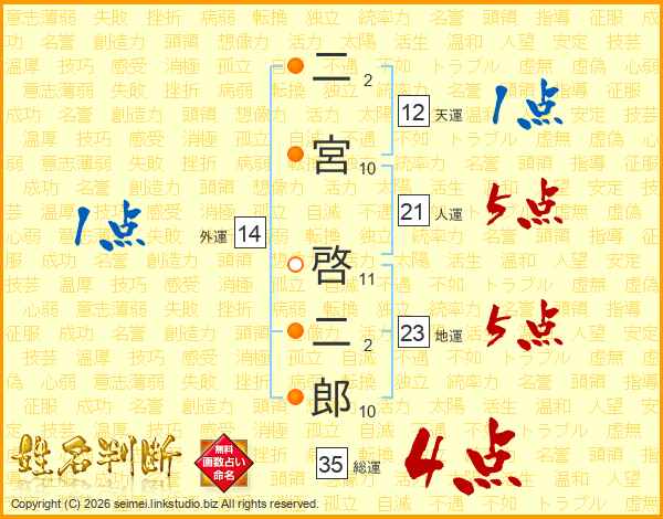 二宮啓二郎さんの総運は35画の4点!