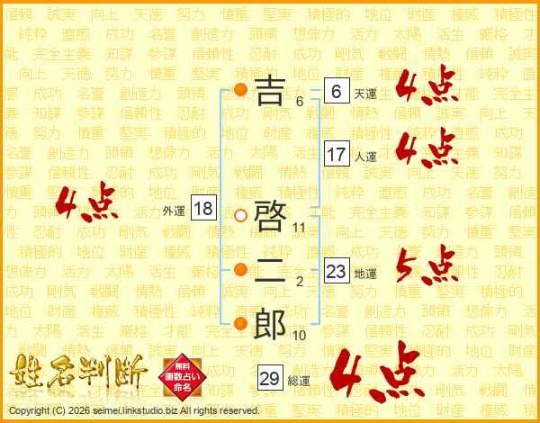 吉啓二郎さんの総運は29画の4点!