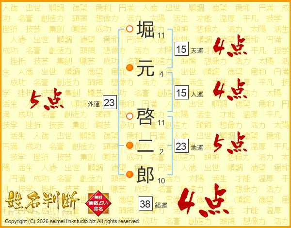 堀元啓二郎さんの総運は38画の4点!