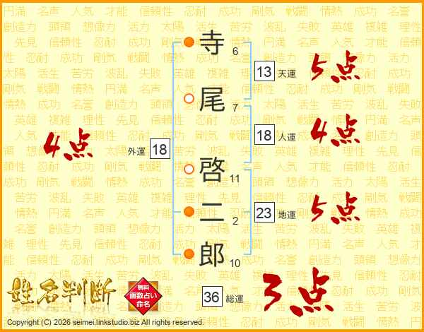寺(6画)尾(7画) 啓(11画)二(2画)郎(10画)