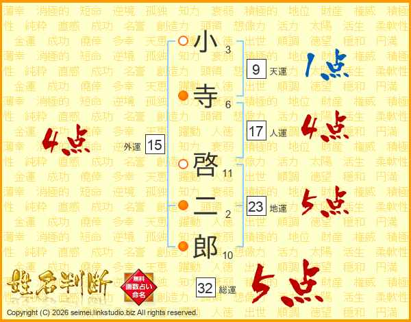 小(3画)寺(6画) 啓(11画)二(2画)郎(10画)
