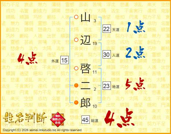山辺啓二郎さんの総運は45画の4点!