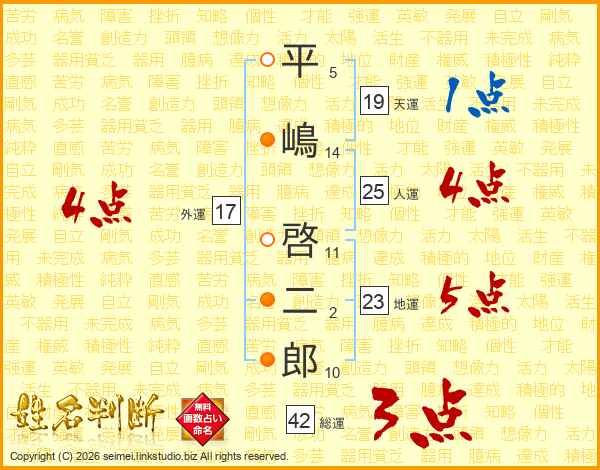 平嶋啓二郎さんの人運は25画の4点!