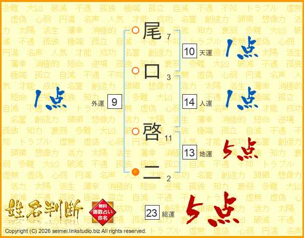 尾口啓二さんの総運は23画の5点!