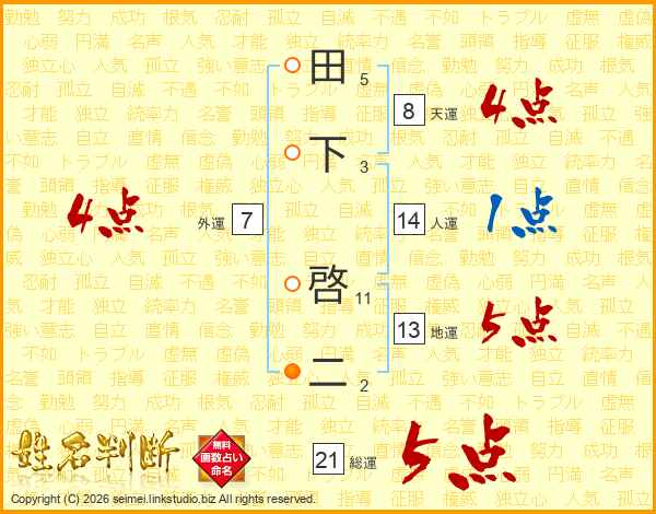 田下啓二さんの総運は21画の5点!