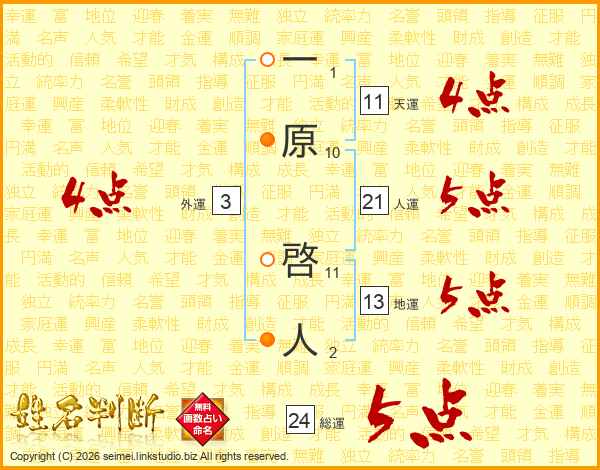 一原啓人さんの総運は24画の5点!
