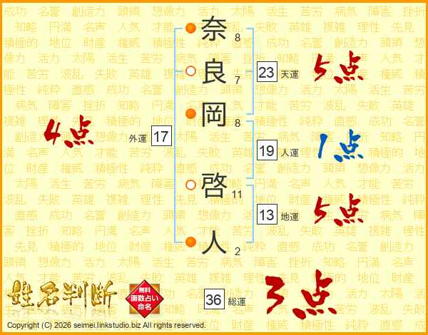 奈良岡啓人さんの天運は23画の5点!
