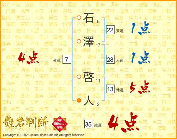 石澤啓人さんの総運は35画の4点!
