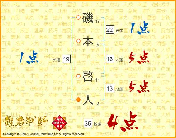 磯本啓人さんの総運は35画の4点!