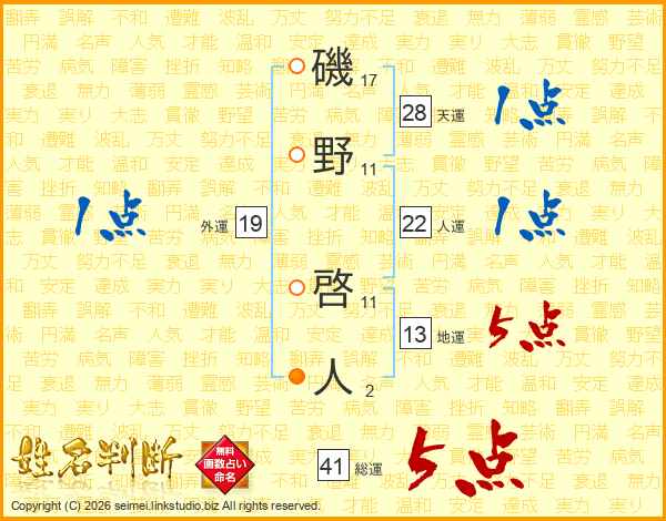 磯野啓人さんの総運は41画の5点!