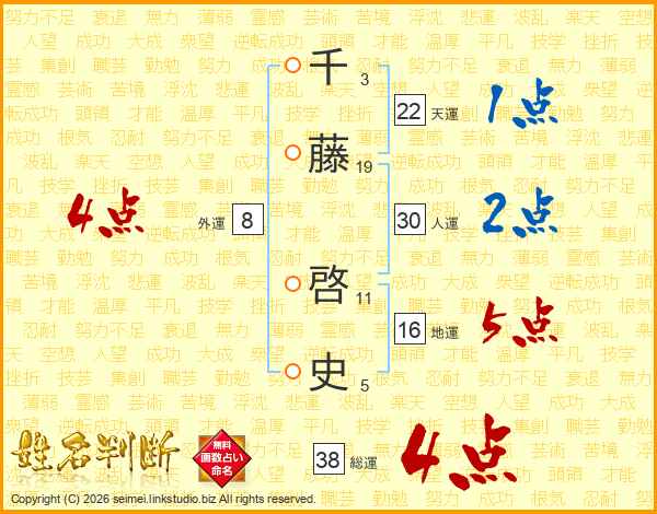 千藤啓史さんの総運は38画の4点!