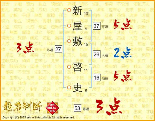 新屋敷啓史さんの天運は37画の5点!