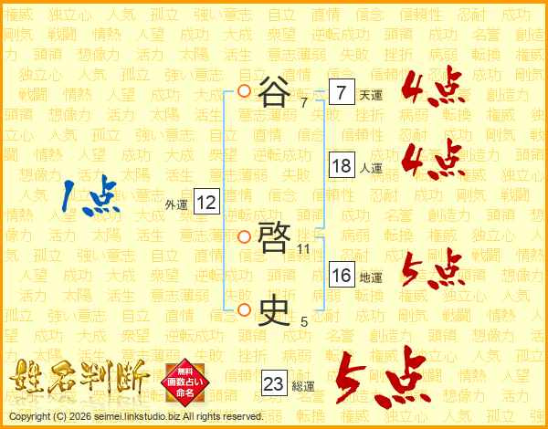 谷啓史さんの総運は23画の5点!