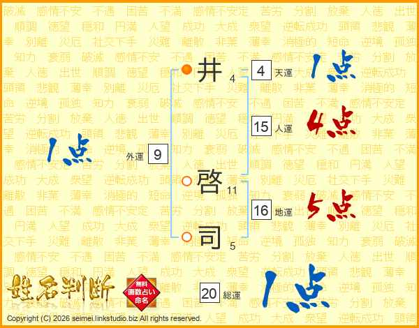 井(4画) 啓(11画)司(5画)