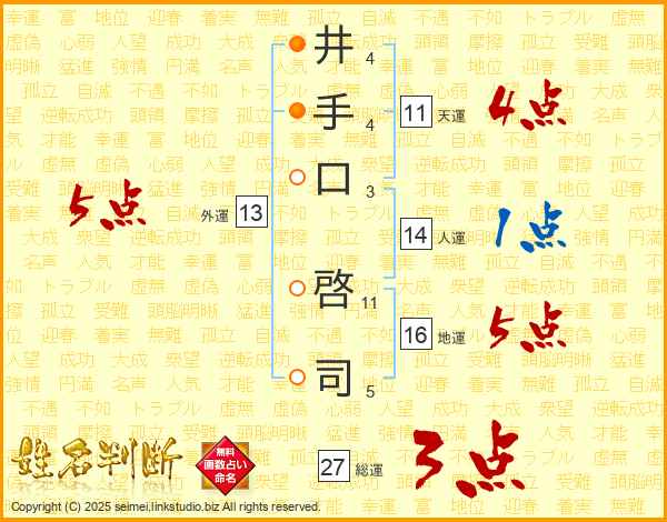 井手口啓司さんの天運は11画の4点!
