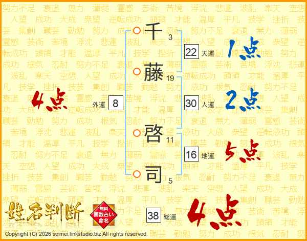 千藤啓司さんの総運は38画の4点!